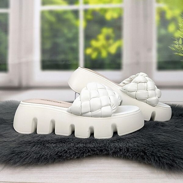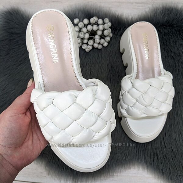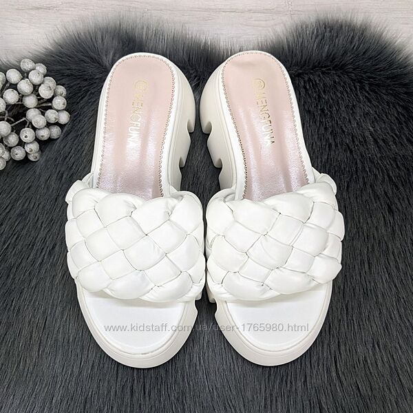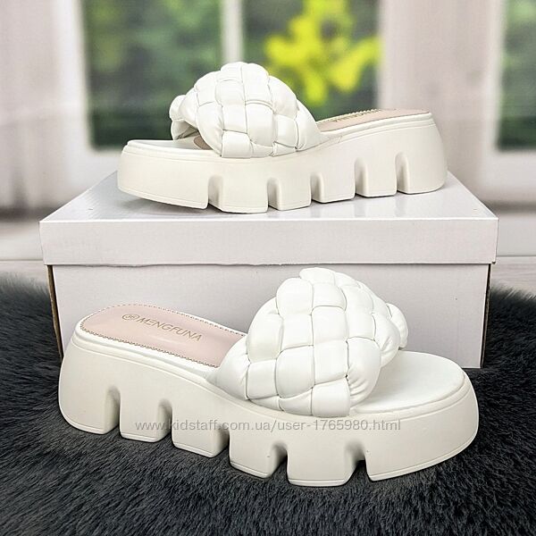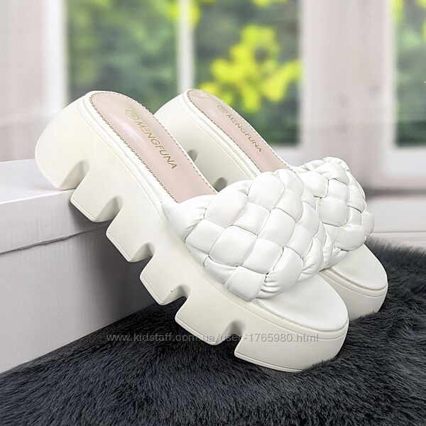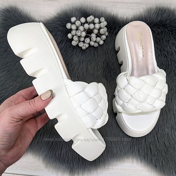Подробное описание: Шлепанцы женские белые эко-кожа плетенка на платформе Mengfuna 4133