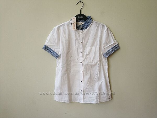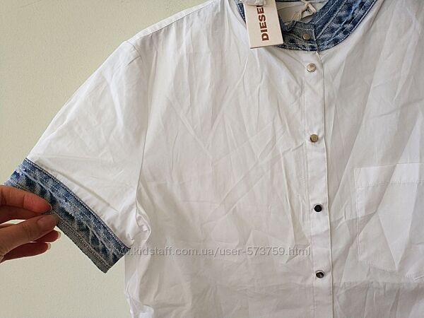 Жіноча бавовняна блуза блузка C-Levi-A Shirt Diesel Італія Оригінал Модель: 00SJKO-0EAJJ Колір- білий/синій ( може трохи відрізнятися від фото) Зроблено в Китаї Розмір : S Склад: 100% бавовна Вимірювання: (1) S: пог-48 пот-47 низ-51,5 довжина-62,5 рукав -18,5 плечі-39,5 Вимірювання можуть мати похибку +- 0,5см Вага: 145 Оплата: 100% на картку ПриватБанку, Безпечна оплата Доставка: УКРПОШТА (оплата за доставку при отриманні посилки); НОВА ПОШТА (оплата за доставку при отриманні посилки); Відправлення: протягом 1-2 робочих днів із моменту оплати; Повернення/обмін: можливо, якщо продукт не був у використанні, зберіг товарний вигляд і всі бирки (якщо є). У разі повернення все пересилання оплачує покупець!