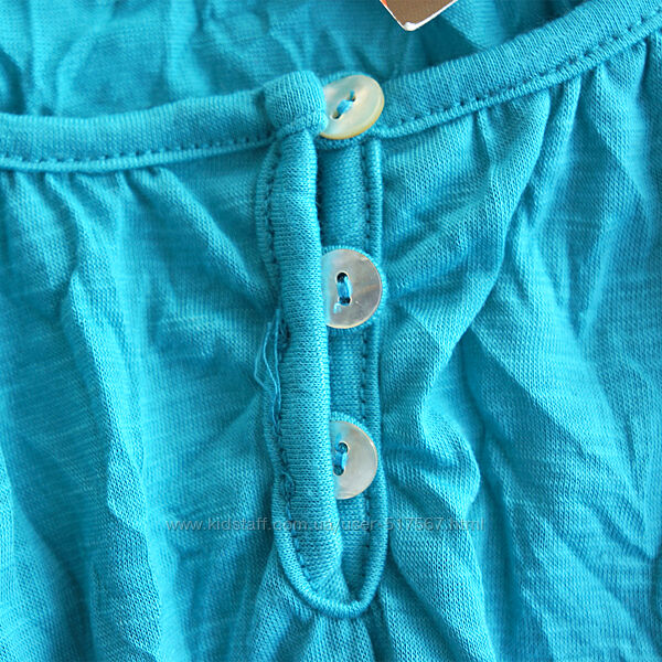 Брендовая туника из жатой ткани с застежкой на три пуговицы. Низ туники собран резинками. Модель не нуждается в утюжке. Можно на бОльший размер. Цвет бирюзовый.Более подробные данные о модели в сантиметрах: