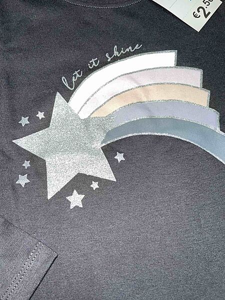 Primark (Испания) хлопковый регланчик Комета на девочку рост 104 на 3/4 года новы с бирками,цвет темный графит, очень красивый и практичныйЗАМЕРЫ: длина = 37, рукав =37, ширина = 33
