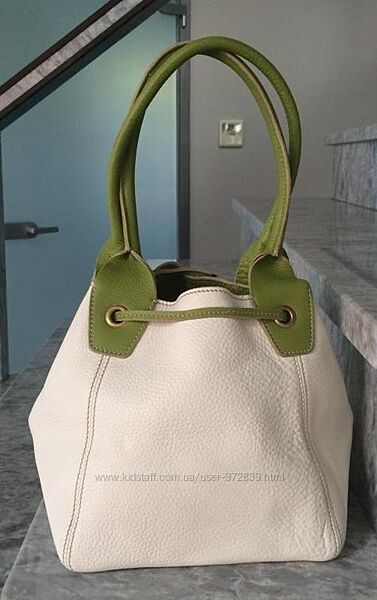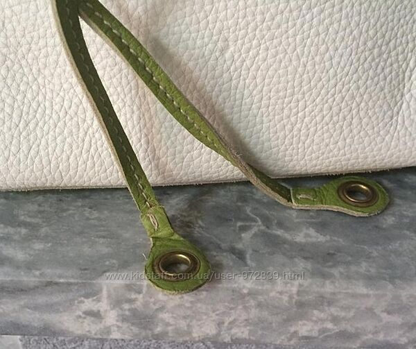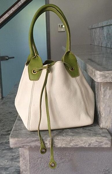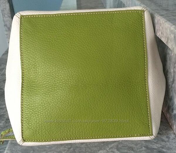 100% ОРИГИНАЛ СУМКА ИЗ НАТУРАЛЬНОЙ ОЧЕНЬ МЯГКОЙ ЗЕРНИСТОЙ КОЖИ. СОЧЕТАНИЕ МОЛОЧНОГО ЦВЕТА С САЛАТОВЫМ ТОРБОЧКА С КВАДРАТНЫМ ДНОМ. ОДНО БОЛЬШОЕ ОТДЕЛЕНИЕ С КАРМАНЧИКОМ НА МОЛНИИ ЗАТЯГИВАЕТСЯ ШНУРОМ.