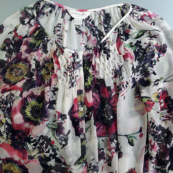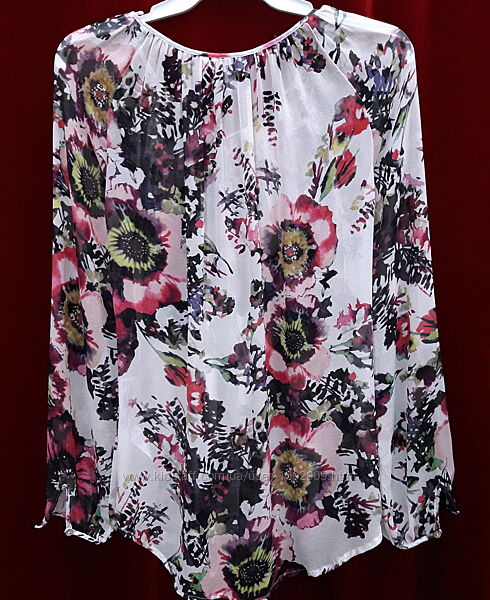 Подробное описание: Шовкова блуза з акварельними квітами, р. М