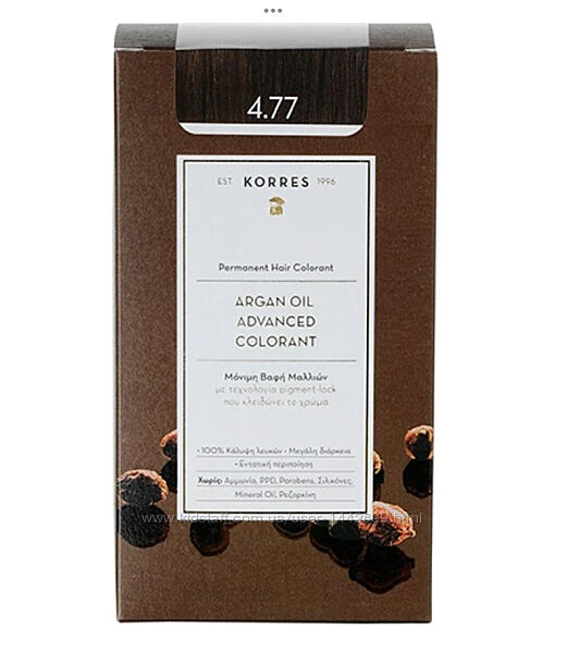 Korres Краска для волос с аргоновым маслом Korres Argan Oil Hair Colorant.Больше, чем окрашивание, настоящая процедура безграничной мягкости без аммиака, для ярких и здоровых окрашенных волос.