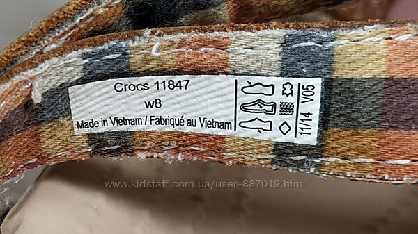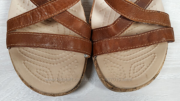 Шльопанці Crocs, оригінал. Лямки з натуральної шкіри, під ними текстильна підкладкаРозмір вказаний W 8, ідуть на наш 39, на стопу приблизно 25 см (повна довжина устілки 25.5 см)