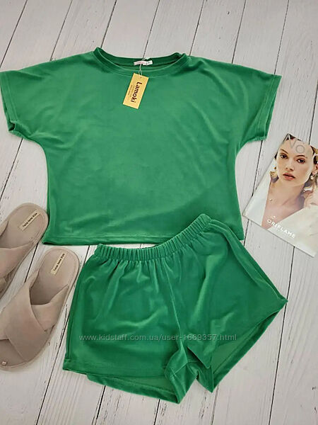 Подробное описание: Пижама женская кофта и шорты зеленая п729
