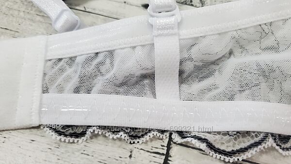 Мереживні бічні деталі чашок збирають груди до центру і красиво переходять у бретелі.