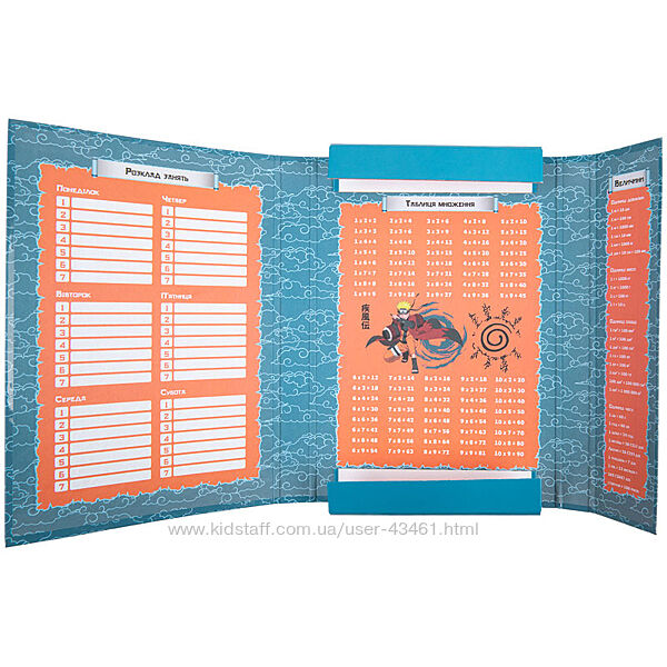 Щоб важливі речі завжди були перед очима, всередині є поле для розкладу, табличка множення та список величин.