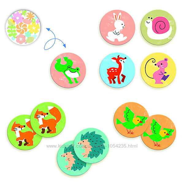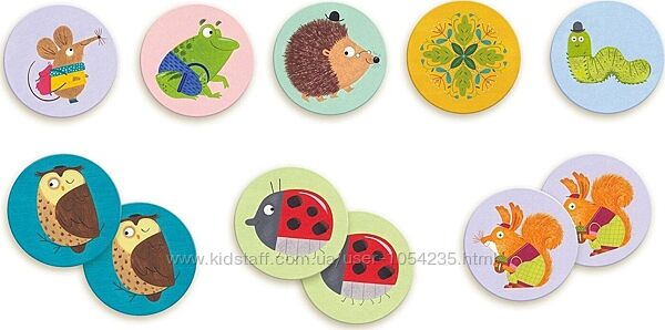 3. Развивающая игра Djeco Мемо: Маленькие друзья. Игра на сопоставление картинок и запоминание, хорошо иллюстрированная милыми животными. Необходимо собрать больше всего парных фишек. Карточки из плотного картона удобны для малышей. Способствует развитию наблюдательности и памяти. Возрастная категория 3+. Цена: 400 грн.