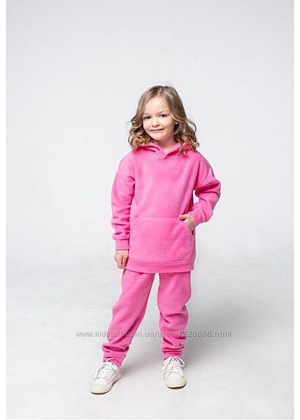 Костюм флісовий, теплий з капюшоном. Ткань дуже м´яка, на відчуття. Розміри повномерні.Кольори: Рожевий, Фіолетовий..