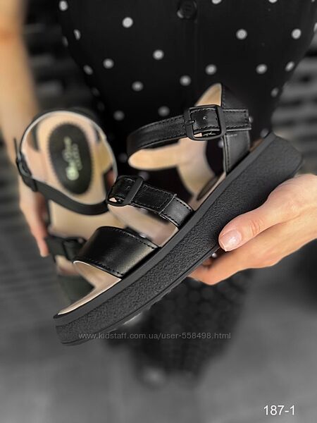 Подробное описание: Розпродаж. Чорні жіночі босоніжки з натуральної шкіри на чорній підошві