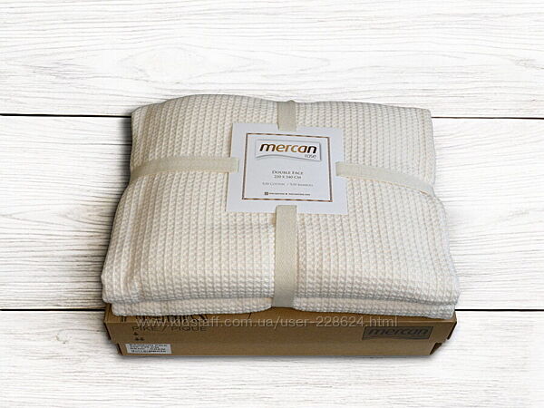 ОписПокривало на ліжко зі спеціальним плетінням, дрібними прямокутниками, що нагадують вафлю. Таке простирадло можна використовувати як покривало на ліжко або, як літню легку ковдру чи плед дома, для відпочинку на дачі, для сауни і бані. Виготовлене із натуральної сировини, має приємну фактуру полотна. Під ним ви зможете приємно відпочити, почуватиметеся тепло та комфортно!