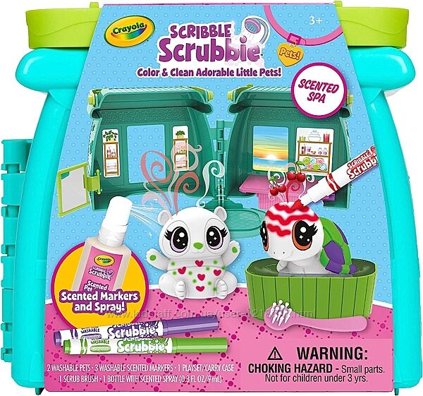 Фото 1-3. CRAYOLA SCRIBBLE SCRUBBIE PETS SCENTED SPA: включает в себя пластиковый футляр для спа со складными ручками, 2 новых Scribble Scrubbie Pets, 3 моющихся и ароматизированных маркера, 1 скраб-щетку и 1 пластиковую ванночку. РАСКРАШИВАЙТЕ, МОЙТЕ И ИГРАЙТЕ: Раскрасьте и настройте своих питомцев, затем вымойте их и начните заново. ЧАСЫ ВООБРАЖЕННОЙ ИГРЫ: игровой набор «Спа» побуждает детей исследовать, воображать и играть с ароматными смываемыми маркерами и спреем. МОЮЩИЕСЯ МАРКЕРЫ: Смывающиеся маркеры Crayola смываются с кожи, большинства вещей, которые можно стирать, и большинства окрашенных стен. АРОМАТИЧЕСКИЕ МАРКЕРЫ И СПРЕЙ: украсьте своих питомцев Scribble Scrubbie расслабляющими и омолаживающими ароматами, которые оживят ваш спа-день! ОТЛИЧНЫЕ ПОДАРКИ ДЛЯ ДЕТЕЙ: юным художникам понравится создавать домашних животных Scribble Scrubbie Pets и задействовать их творческий потенциал, что делает их лучшими игрушками для ухода за домашними животными для девочек и мальчиков. БЕЗОПАСНО И НЕТОКСИЧНО: идеально подходит для детей от 3 лет.Фото 4-6. Crayola Scribble Scrubbie Peculiar Pets Rainbow Tub Set