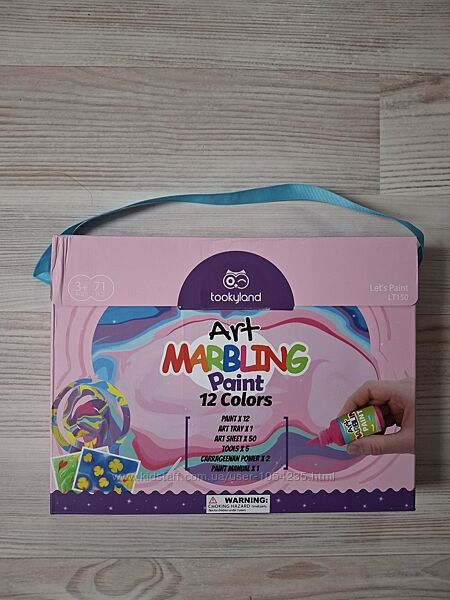8. Набор Tookyland "Рисование на воде". В наборе 12 тюбиков с красками, 2 бутылочки специального порошка, разные инструменты, 40 листов бумаги и инструкция. С этим набором ваш ребенок сможет создавать множество красивых и уникальных узоров. Такое занятие раскроет его творческий потенциал и позволит самовыразиться. Набор будет интересным в любом возрасте. Краска нетоксичная и абсолютно безопасная в использовании. Комплектация: 12 тюбиков краски (по 16 мл.); 3 иголки, пипетка, бумага для рисования 40 листов; 10 листов с узорами, пинцет, емкость, инструкция. Легко рисовать: только несколько движений иголкой по поверхности воды, и вы можете любоваться красивыми узорами - вашими собственными шедеврами. Набор новый, но ЕСТЬ НЕБОЛЬШАЯ ПРИМЯТОСТЬ КОРОБОЧКИ В УГОЛКЕ ВВЕРХУ СЛЕВА. Цена: 600 грн.
