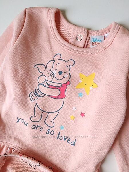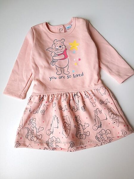 Сукня утеплена двох нитка персикового кольору з принтом Вінні Пух. Застібається на кнопках сзаду. Склад бавовна. Заміри довжина 41, грудях 24, рукав 26 смCірого кольору р.74-80
