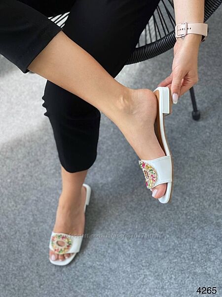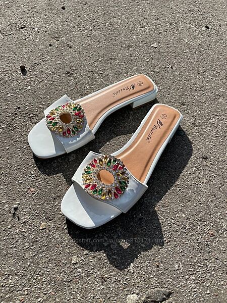 Жіночі шльопанці з різнокольоровими стразамиКолір білий