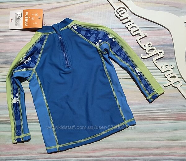 Блакитний сонцезахисний топ від бренду Pusblu у розмірі 86 (с16).З довгими рукавами та застібкою на молнію сзаду.