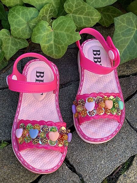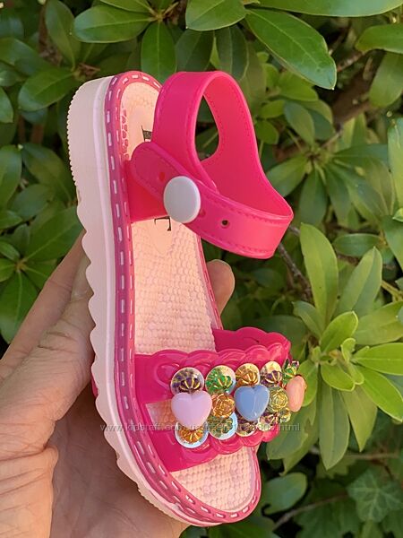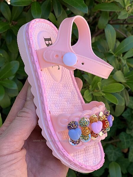 Пляжні босоніжки.М´які, легкі, яскраві. Прикрашені яскравими паєтками та камінням. Застежка-кнопка. Те, що потрібно для літа! Мають дуже стильний вигляд.