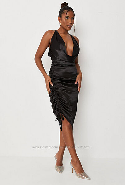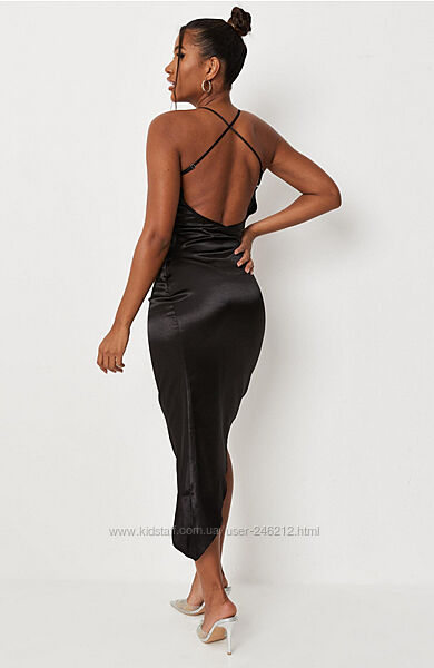 Атласное платье сарафан missguided x carli bybel из последней коллекции .Спереди сексуальная драпировка с вырезом , сзади перекрещивающиеся бретели , юбка сбоку драпировка.