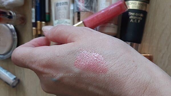 на руке затесты - блеск, помада, карандаши и тени