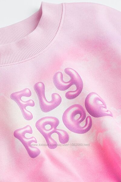 Красивый, стильный укороченный свитшот для девочек от H&M!Утепленный, внутри с начесиком, мягенький, приятный к телу. Рукава и низ на резинке. Цвет - розовый, впереди надпись FLY FREE.