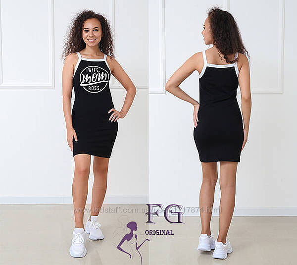 Подробное описание: Розпродаж 42-48р Трикотажна сукня-майка Mom