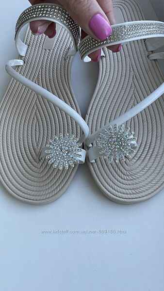 Гарненькі легкі шльопанці.На пальчику гарна прикраса з камінчиків на еластичній підкладці (шкіру на подразнює)