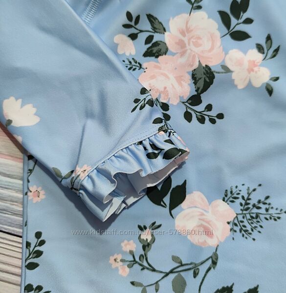 Блакитний сонцезахисний костюм з квітами від бренду George у розмірі 4-5 років (с15).З довгими рукавами та оборками на рукавчиках.