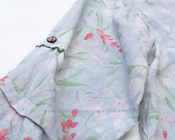 Натуральная, легкая, дышащая, в акварельный цветочный принт. Крой свободный, фантазийный, рукава с подхватами, пуговки из кокосовой скорлупы. Выглядит мегастильно и привлекательно, очень комфортная, легко сочетается с любым низом.