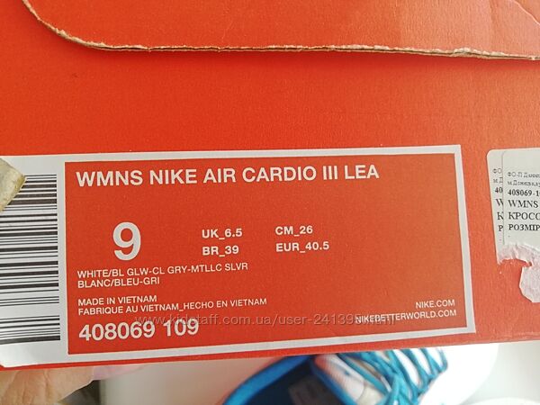 Кожаные кроссовки NIKE WMNS AIR CARDIO, размер 40
