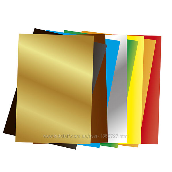 Кількість кольорів: 8 аркушів стандартних кольорів (жовтий, фіолетовий, помаранчевий, чорний, рожевий, червоний, синій, блакитний) +1 золото +1 срібло