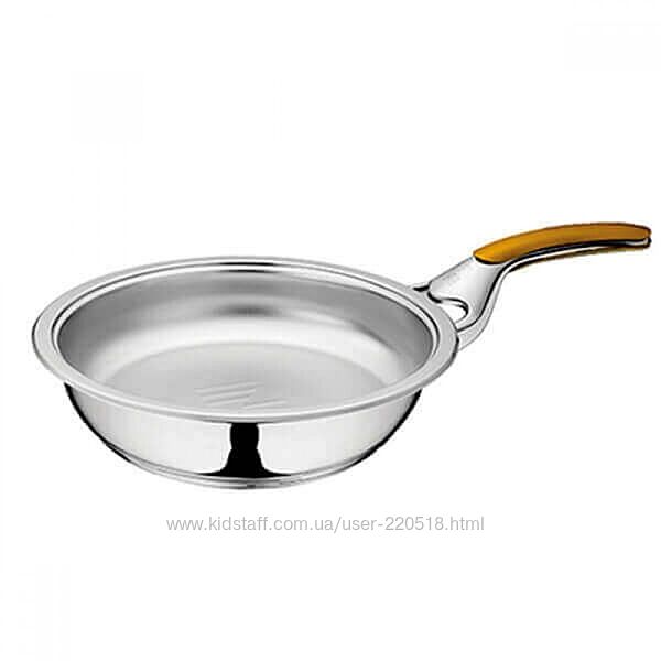 Универсальная сковорода Zepter с уникальной URA-поверхностью из коллекции Masterpiece с одной ручкой и металлической крышкой с термоконтроллером.Эта посуда имеет оптимальный размер и подходит для всех типов плит.