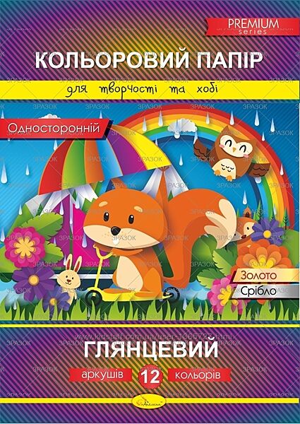 Кольоровий папір Глянцевий односторонній А4 12аркушів, ТМ Апельсин