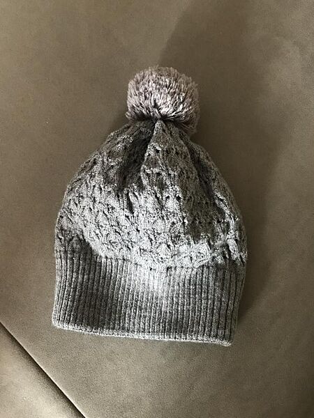 Тепла ажурна шапка з помпоном, двошарова Чудовий варіант на холодну осінь або єврозиму. Розмір 56-59. За потреби можу зробити заміри. Підходить і на підлітка, і дорослого Стан - ідеальний