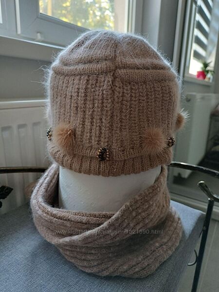 Класнючий шерстяний комплект - шарф і шапка. бірок немає