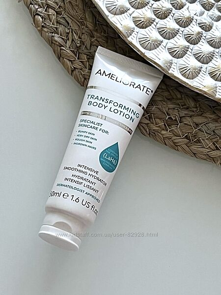 Опис: Оновлюючий крем для тіла з кислотами. Трансформуючий лосьйон для тіла Ameliorate призначений для поступового м´якого відлущування мертвих клітин шкіри, розблокування волосяних фолікулів, попередження відростання волосся після епіляції, видалення ефекту гусячої шкіри, розм´якшення і видалення шкірних покривів шкіри тіла. До складу крему входить велика кількість молочної кислоти, яка працює як відщеплювач, і легкі зволожуючі компоненти, включаючи сечовину, вітамін Е, олію солодкого мигдалю, протеїни молока, ефірні олії апельсину, кедри та герані