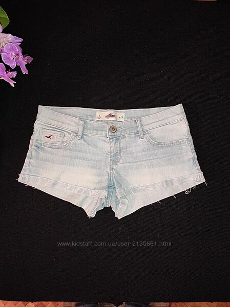 Hollister (Холлістер) Стильні короткі джинсові блакитні шорти S-MПОТ 40 см , ПОС 46 см , довжина 28,5 см , посадка спереді 16,5 см , посадка позаду 31,5 см .