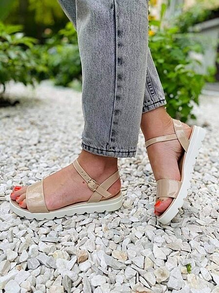 Боссоножки жіночі 801 бежевий літо шкіра натуральна