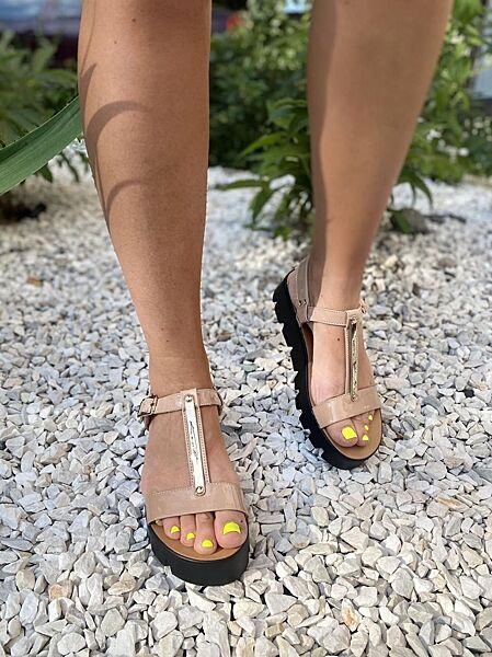 Подробное описание: Боссоножки жіночі Kento 3211 капучино літо шкіра лакированая натуральна