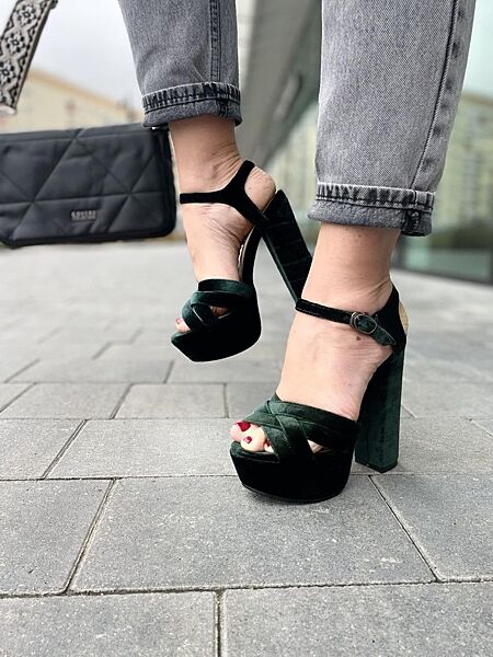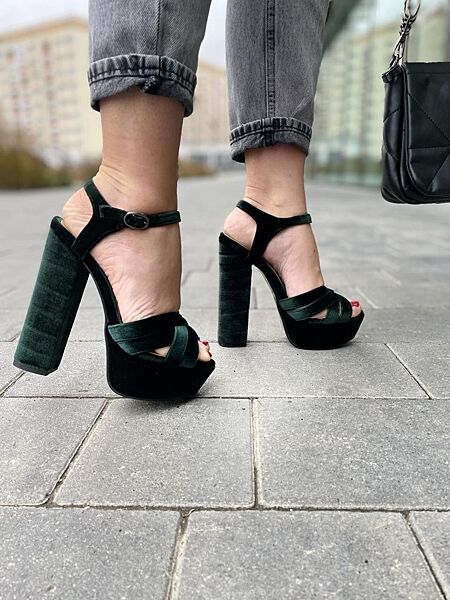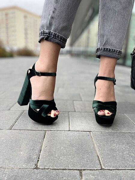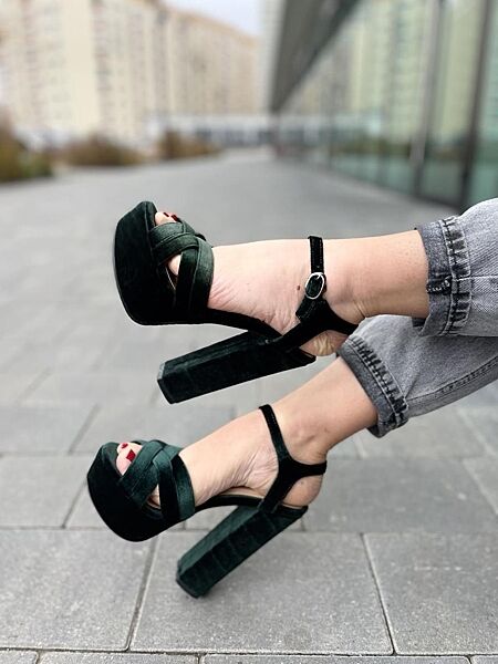 Подробное описание: Босоніжки жіночі LENA MELIANI D176-J2348 темно-зелені літо, оксамит 3857 ли
