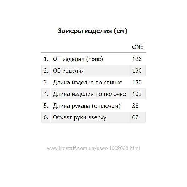 Параметри: довжина виробу: 130 см. Довжина рукава (з плечем): 38 см. ( Також є коротша - довжина 85 см).