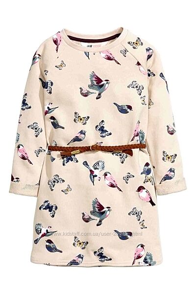 Платье из мягкого футера H&M с плетеным пояском. Нежный принт роз по всей поверхности.