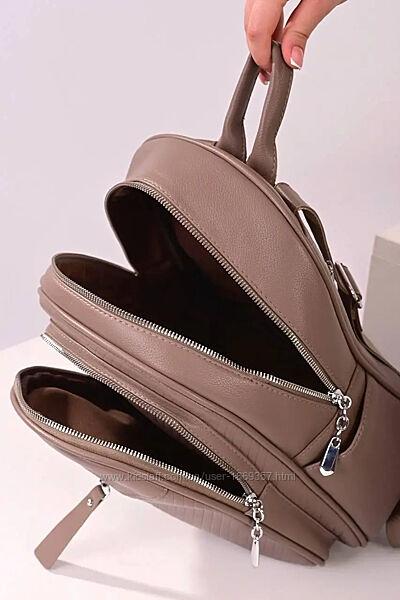 Рюкзак изготовлен из искусственной кожиРюкзак имеет два отдела на молниях и 1 карман