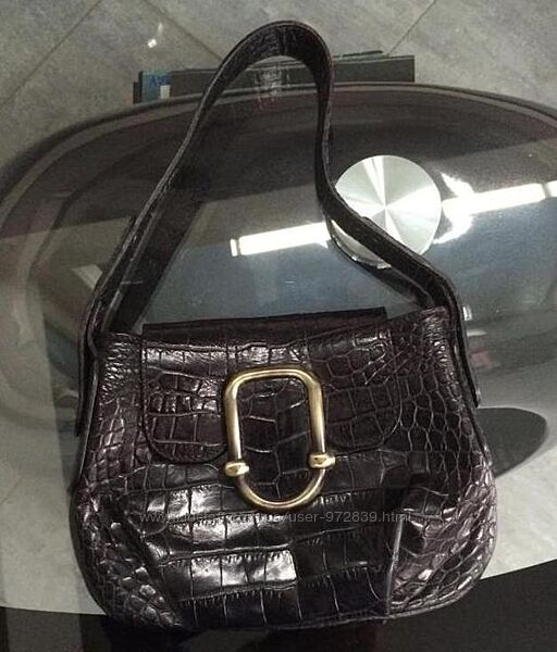 Женственная стильная сумочка. Оригинал Состояние идеальное Из натуральной очень плотной кожи с выделкой под крокодила. Держит форму, Фурнитура цвета тусклого золота / бронзы с гравировкой лого бренда , сзади металлическая табличка Emporio Armani