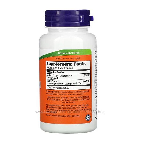 Подробное описание: Хлорофіл Chlorophyll Now Foods, 100 мг, 90 рослинних капсул