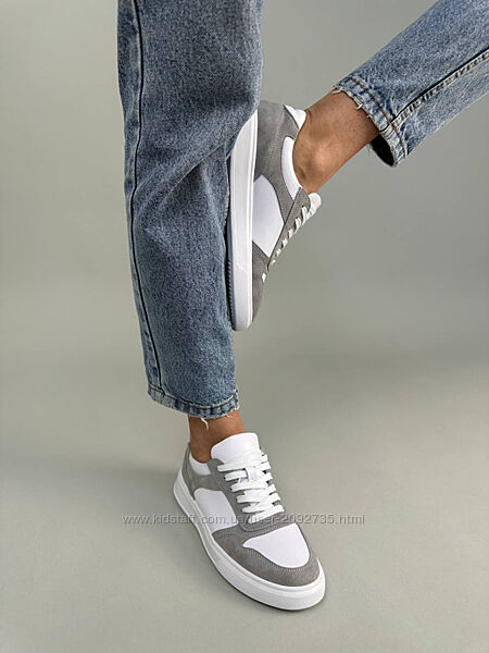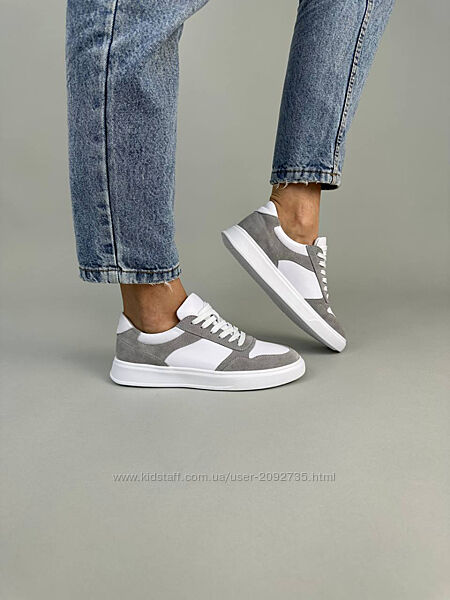 Подробное описание: Кеди жіночі шкіряні білі зі вставками замші Артикул 8509