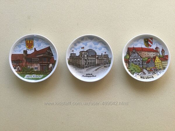 Красивые сувениры из Германии: монеты, магниты от 30 гривен, тарелки от 120 гривен, чашки по 100 гривен, что гораздо дешевле, чем покупались. Украсят Ваш интерьер. При покупке магнита - монетка из Германии в подарок. Сам качественно пакую, доставка может быть недорогой.Также в наличии сотни сувениров из десятков стран всего мира: магниты, тарелки, панно, монеты и другие. По запросу пришлю больше фото или смотрите мои объявления.