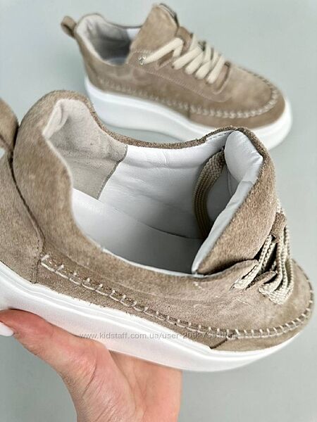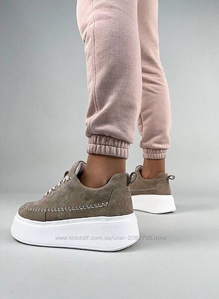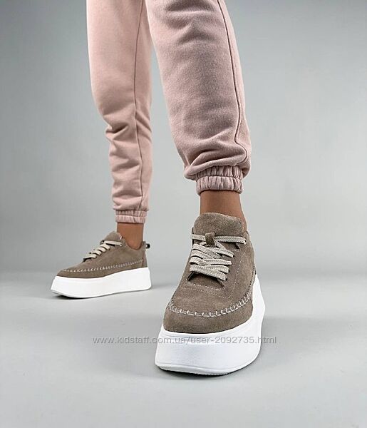 Подробное описание: Кеди жіночі замшеві бежеві та сірі на білій підошві Артикул 8552 розпродаж