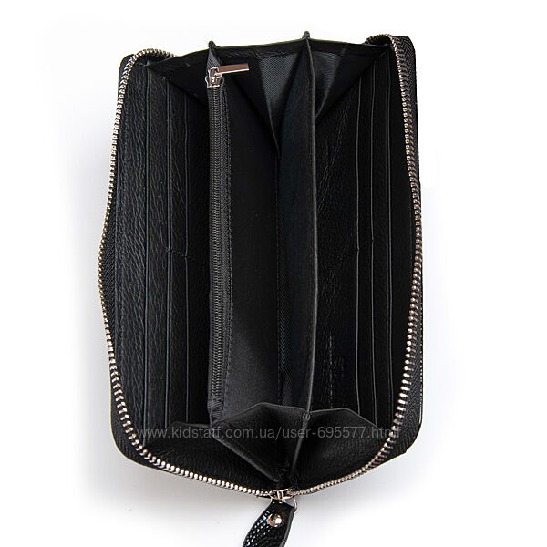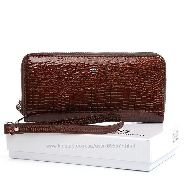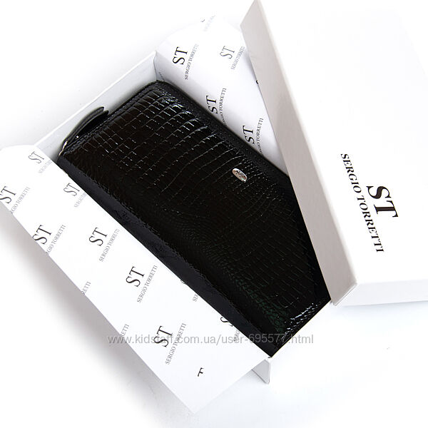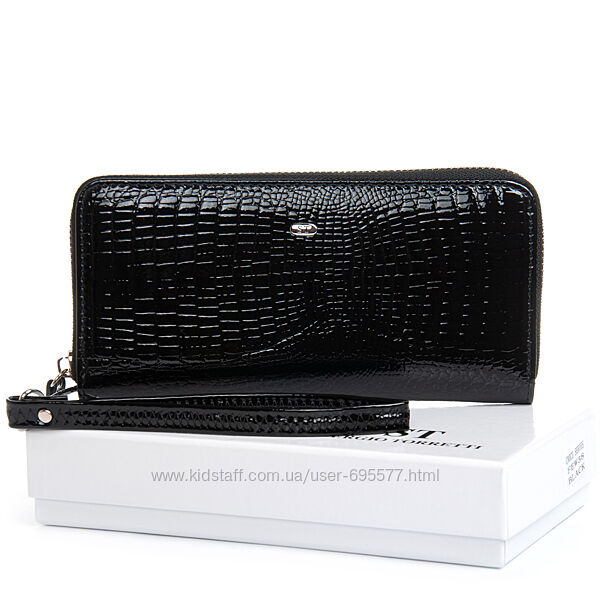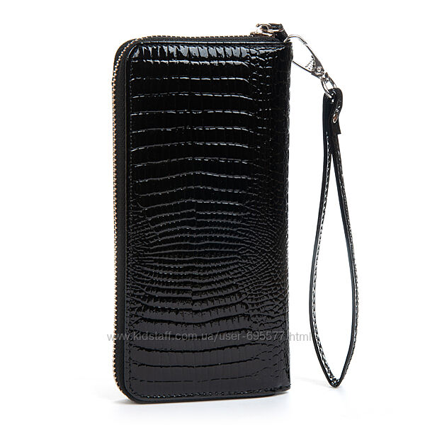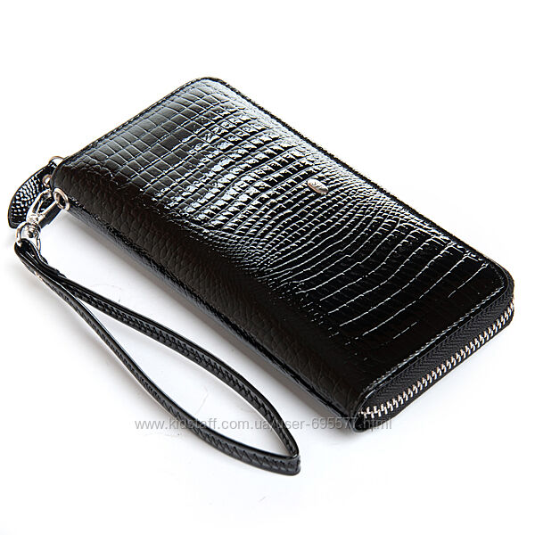 Жіночий шкіряний гаманець-клатч Sergio Torretti. Закривається на блискавку.Зовнішня частина - рельєфна лакова шкіра серії Croco, внутрішня частина - натуральна м´яка шкіра. Всередині знаходяться 3 відкритих відділення для банкнот, кишеня-монетниця на блискавці, 2 великих відкритих кишені і 8 кишень для візитних карток. У комплекті шкіряний ремінець на кисть.