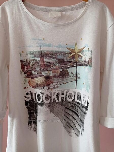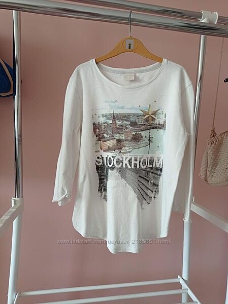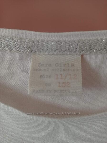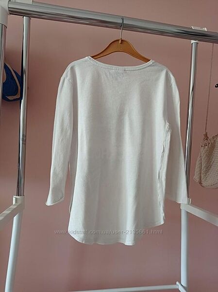 ZARA Іспанія. лонгслів білосніжний крутий натуральний реглан з тонкої бавовни з рукавом 3\4 з останньої колекції. Яскравий принт. На етикетці вказаний вік 11-12 років, але можна і раніше. Стан відмінний.Крій не приталений. Довжина - 53 см ПОГ - 40 см Довжина рукава - 30 см з манжетом