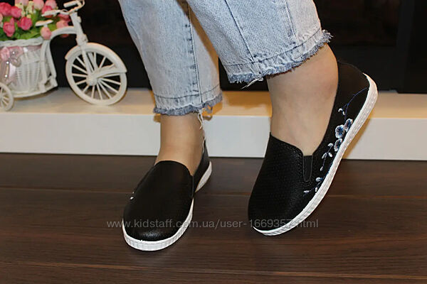 Подробное описание: Слипоны женские черные с вышивкой т1693